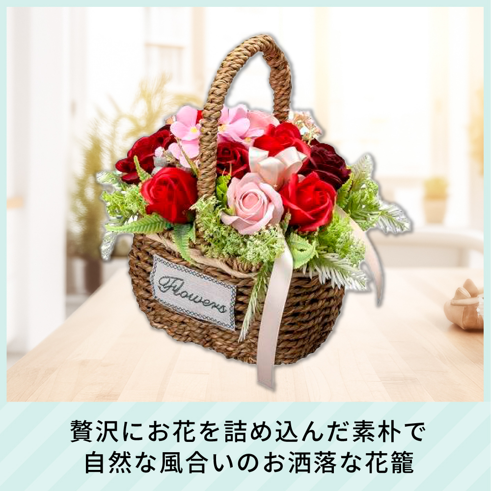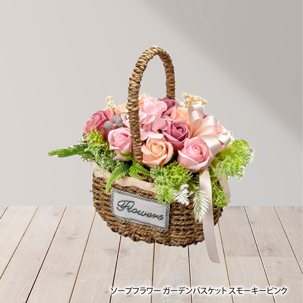 自然な風合いのおしゃれな花籠に入った、ソープフラワーの「ガーデンバスケット」が入荷しました。
